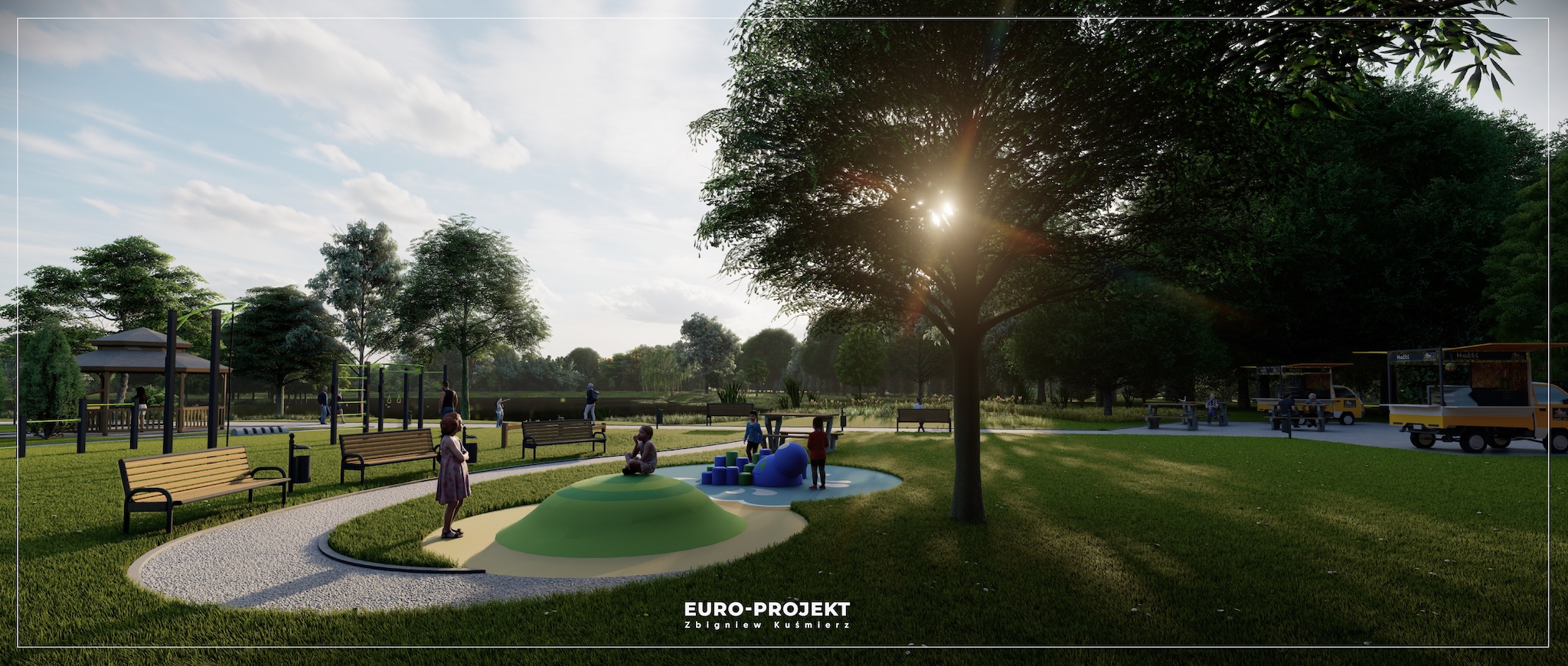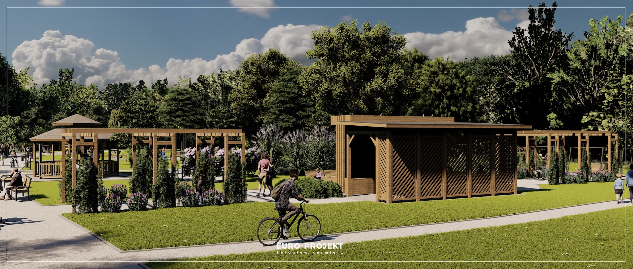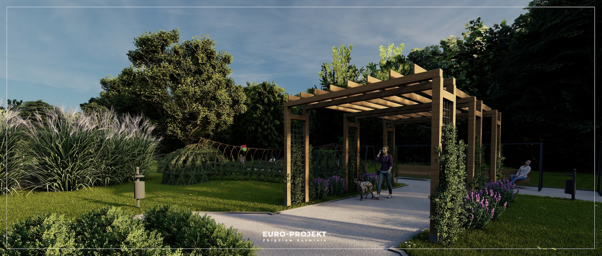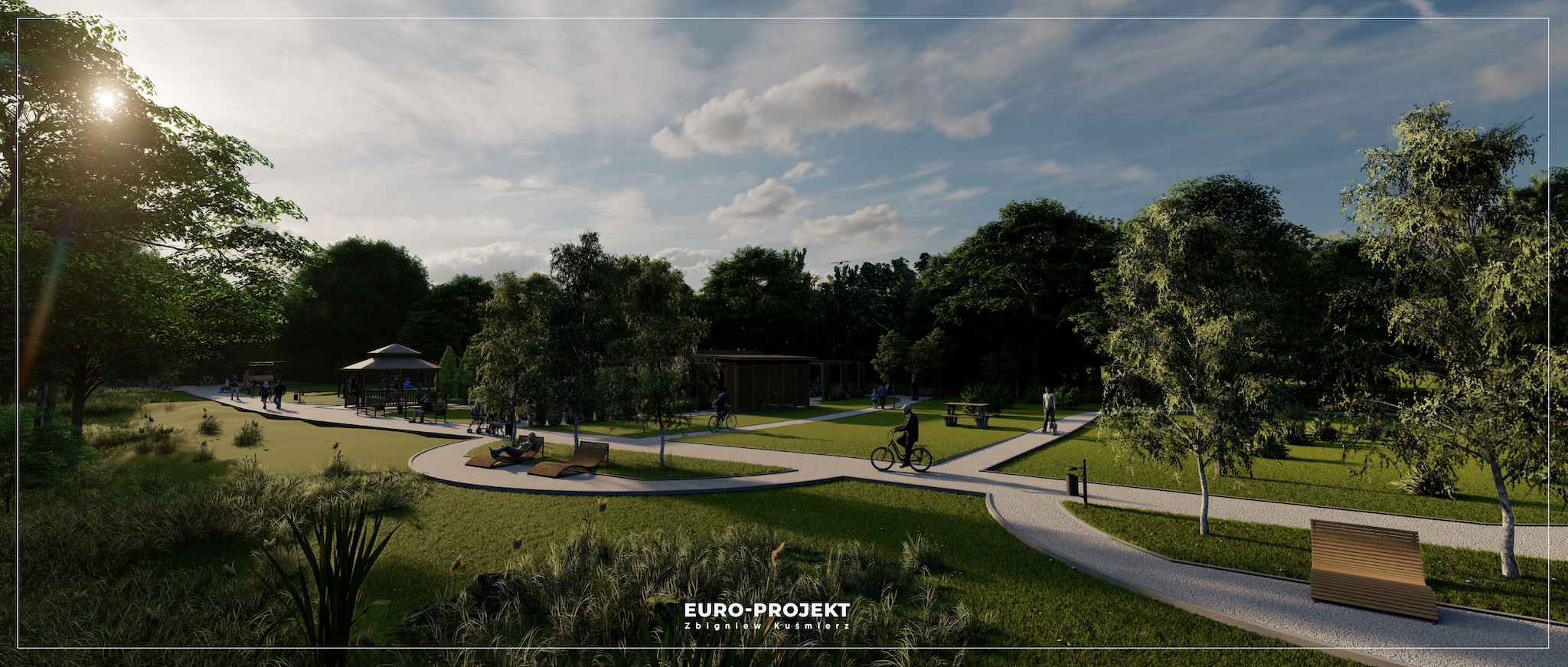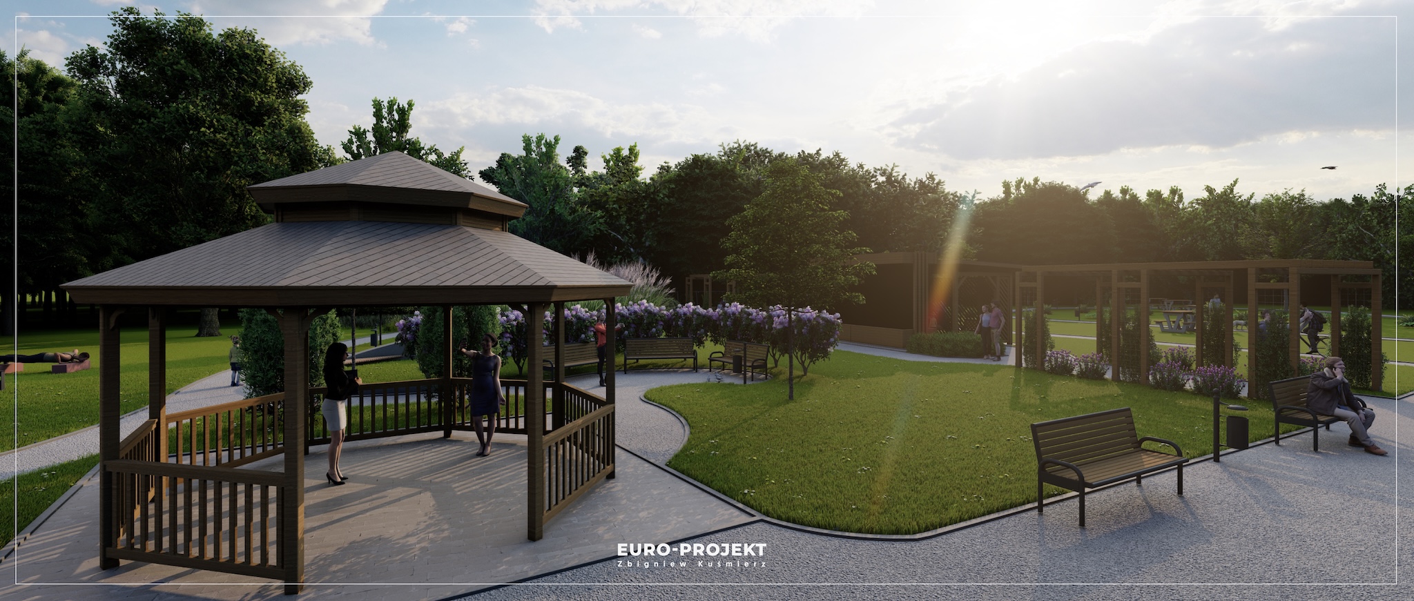 Projekt zagospodarowania terenów nad jeziorem Piekiełko w Braniewie, zakładający budowę zewnętrznej tężni solankowej, siłowni, placu zabaw oraz założenia ogrodowo-parkowego.