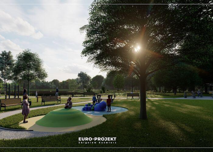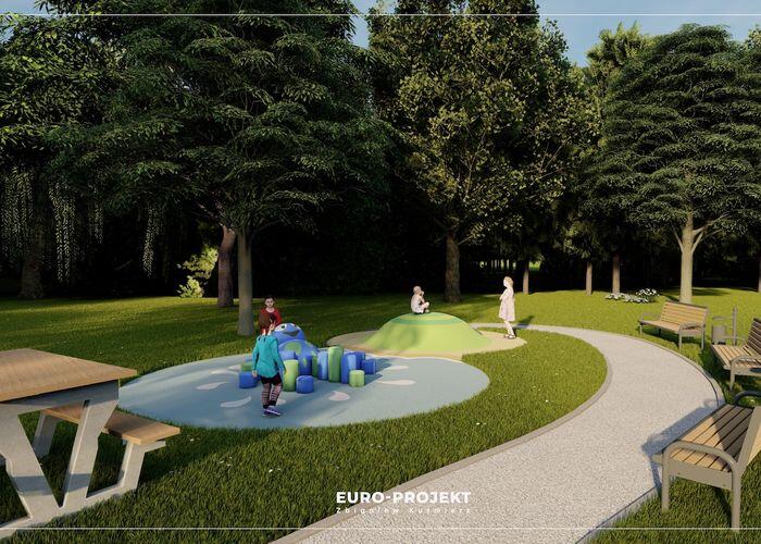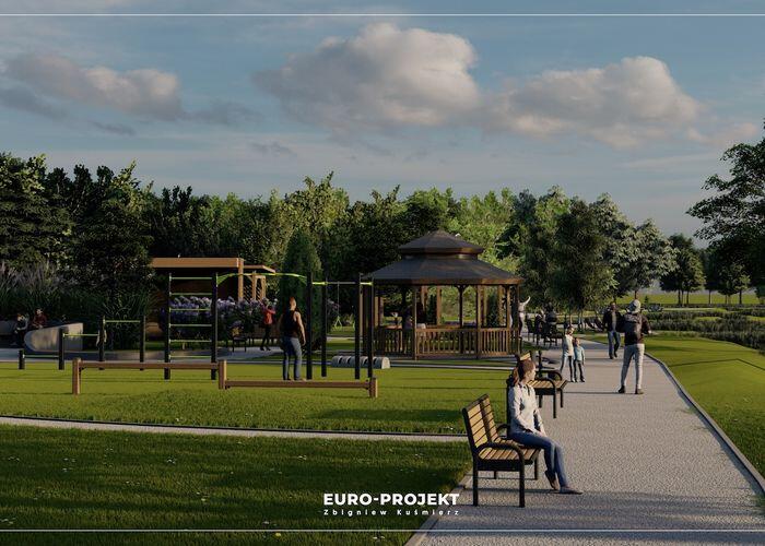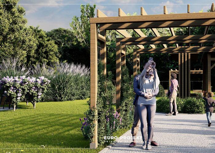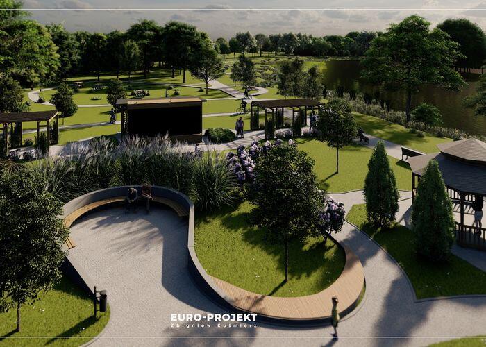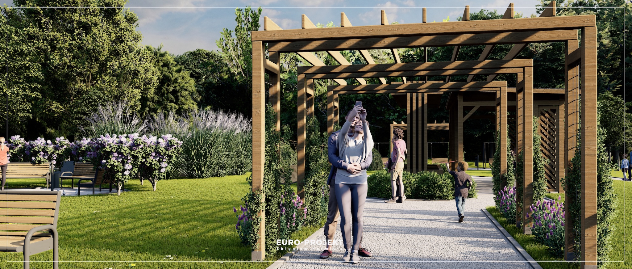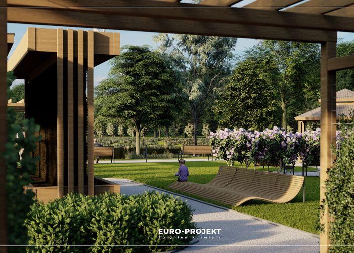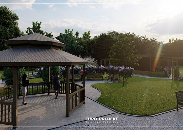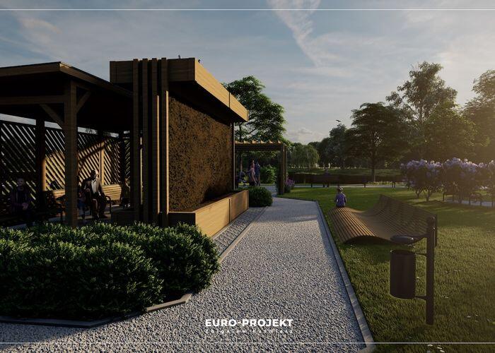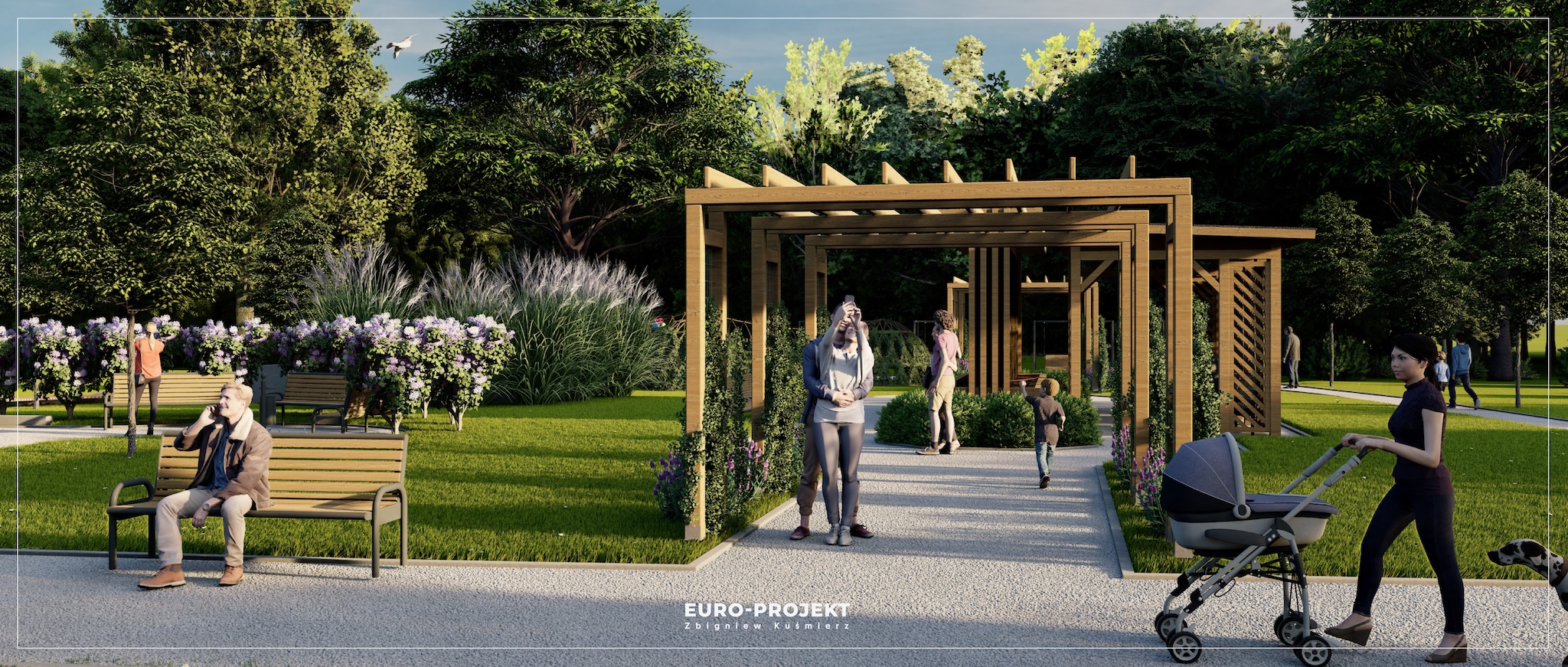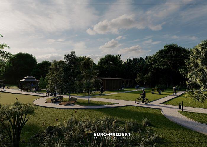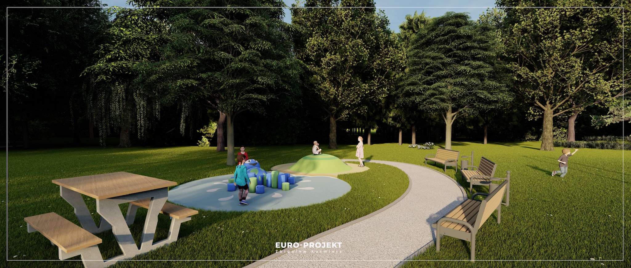 Projekt zagospodarowania terenów nad jeziorem Piekiełko w Braniewie, zakładający budowę zewnętrznej tężni solankowej, siłowni, placu zabaw oraz założenia ogrodowo-parkowego.
